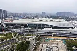 Xintang railway station (Chinese: 新塘站; pinyin: Xīntáng zhàn; Jyutping: San1 tong4 zaam6), formerly known as Xintang North in 2018-2019, is a railway station in Xintang, Zengcheng District, Guangzhou, Guangdong Province, China. It is a station on the Guangzhou–Shenzhen railway and the Guangzhou–Shanwei high-speed railway.[1]