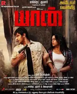 Yaan (transl. Me) is a 2014 Indian Tamil-language action thriller film written, directed and filmed by Ravi K. Chandran. It stars Jiiva and Thulasi Nair in her second and final acting credit.[1] The film's soundtrack and score was composed by Harris Jayaraj, while editing and art direction were done by A. Sreekar Prasad and Sabu Cyril, respectively.[2] Resul Pookutty was in charge of the sound mixing and Brinda was in charge of the choreography. The film was reported to be based on the 1978 film Midnight Express.[3][4]