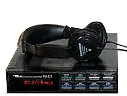 Yamaha FB-01 FM Sound Generator (with a pair of headphones sitting on top)