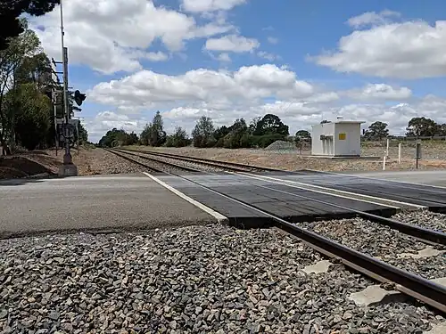 ![]() The level crossing adjacent to the former station site in 20175 | |||||||||||