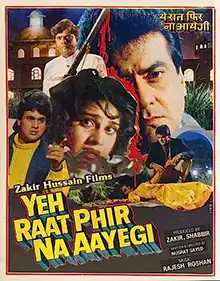 Yeh Raat Phir Na Aayegi (transl. This Night Will Never Again Come) is a 1992 Indian Hindi-language horror thriller film, produced by Zakir-Shabbir on Zakir Hussain Films banner[3] and directed by Nusrat Sayeed.[4] Starring Jeetendra, Meenakshi Sheshadri[5] and music composed by Rajesh Roshan.[6]