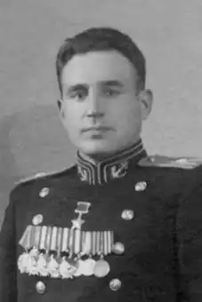 Yevgeny Ivanovich Kabanov (Russian: Евгений Иванович Кабанов; 20 November 1918 – 19 June 1989) was a Soviet Naval Aviation major general and Hero of the Soviet Union. During World War II, Kabanov served as a bombardier, gunner and navigator in a dive bomber aviation regiment of the Baltic Fleet. He fought in the Siege of Leningrad, the Baltic Offensive, and the Battle of Königsberg. Kabanov was awarded the title for making 103 Petlyakov Pe-2 sorties by June 1944. Postwar, Kabanov became chief navigator of the Black Sea Fleet Air Force, the 8th Fleet Air Force, and the 9th Fighter Aviation Corps. Between 1956 and 1974, Kabanov was chief navigator of Soviet Naval Aviation. He retired in 1974 with the rank of Major general and worked at GosNIIAS. He died in 1989.[1]