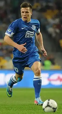 Yevhen Olehovych Konoplyanka (Ukrainian: Євге́н Оле́гович Конопля́нка; born 29 September 1989) is a Ukrainian former professional footballer who played as a winger.