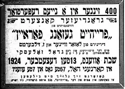 - ^ "Max Helfman to Lead Freiheit Gezang Concert May 13". The Jewish Post. Paterson, N. J. May 5, 1938. p. 7.