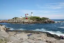 A number of spots throughout The Yorks have views of the Cape Neddick Light at Nubble Rock, which has figured in both artists' work and souvenirs of the Maine coast. A photo of the Cape Neddick Light is on the Voyager 1 spacecraft labeled as Seashore, Maine.[10] Visible in clear weather is the 133-foot (41-meter) tall Boon Island Light on Boon Island, located 6.2 miles (10.0 km) off York.