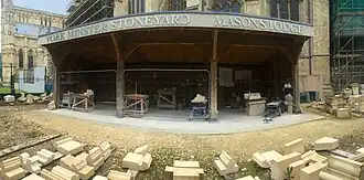 York Minster is one of nine cathedrals in England to possess a permanent masons' workshop.[3] A team of around sixteen stonemasons works at the stoneyard today, ranging from first-year apprentices to the Master Mason.[4] Lead stonemason Lee Godfrey has worked at the minster since 1990.[4]