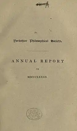 Title page of the 1835 Annual report of the Yorkshire Philosophical Society