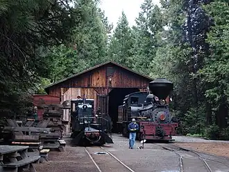 - ^ Other former Pickering Lumber steam locomotives survive today. The Niles Canyon Railway in Fremont, California, preserves Pickering No. 12, a three-truck Shay, and No. 1, a three-truck Heisler. The Mount Rainier Scenic Railroad maintains No. 11,"Mt. Rainier Scenic Railroad, Elbe, Washington USA". Archived from the original on November 21, 2008. Retrieved March 13, 2009. a three-truck Pacific Coast Shay. No. 3, a two-truck shay, is stored on display at the Tuolumne County Fairgrounds in Sonora, California.[1]. The El Portal Transportation Museum preserves No. 6, a three-truck Pacific Coast Shay similar to No. 11. The Humboldt Log Museum, near Korbel, California, preserves No. 33, a three-truck shay. No. 8 is another three-truck shay, currently in private ownership awaiting repair in Oregon. No. 7 is a three-truck shay on display at the Railtown 1897 State Historic Park in Jamestown, California.