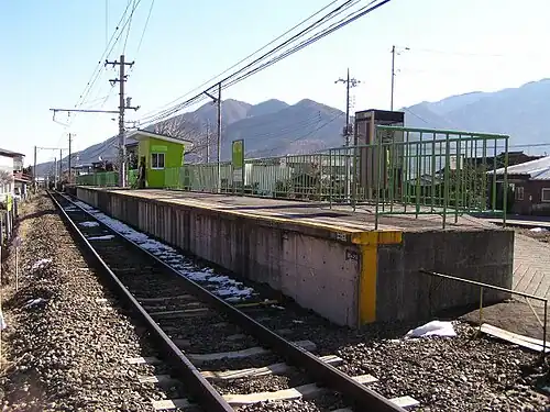 The station is unstaffed, and consists of one side platform serving a single bidirectional track, with the station structure located on the south side of the track.[1] It has a waiting room but no toilet facilities.[1]