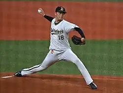 In 2018, he pitched primarily in relief, appearing in 60 games, with a 2.10 ERA.[1] He also was selected to appear in the Nippon Professional Baseball All-Star Series[2] and finished second in rookie of the year voting.[3] The following season, he returned to the starting rotation, with a 8–7 record, 1.99 ERA and 133 strikeouts in 21 games.[1] In the pandemic shortened 2020 season, he was 8–4 in 18 appearances with a 2.20 ERA.[1]