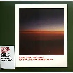 "You Stole the Sun from My Heart" is a song by Welsh rock band Manic Street Preachers, released on 8 March 1999 as the third single from their fifth studio album, This Is My Truth Tell Me Yours (1998). All three members of the band—James Dean Bradfield, Sean Moore and Nicky Wire—share the writing credits.[2] The song reached number five on the UK Singles Chart.