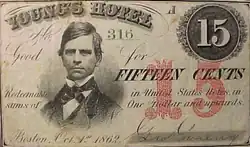 Young's Hotel (1860–1927) in Boston, Massachusetts, was located on Court Street in the Financial District,[1] in a building designed by William Washburn. George Young established the business, later taken over by Joseph Reed Whipple and George G. Hall.[2] Guests at Young's included Mark Twain, Elizabeth Cady Stanton, William Lloyd Garrison, Charles Sumner, Rutherford B. Hayes, and numerous others.