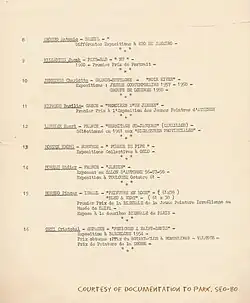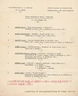 Young Painters of the World (French: Jeunes Peintres du Monde) was a one-month long residency program which was organized by International Association of Art and supported by UNESCO to promote interchange between young artists from all over the world and improve their social status. The first program was held in Paris from October 2 to 28 in 1961 by the French National Committee of IAA. A selected young artist under age of 30 as a representative of his or her country had the qualification for participation. They were provided accommodation, meals and transportation during the program. Because lack of data, it is not clear yet how often the program was held by each national committee of IAA in rotation and until when it was managed in relation to UNESCO.[1]