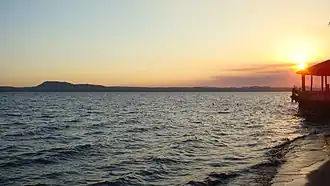 Ypacaraí Lake is a major body of water located in Paraguay, about 50 kilometres (31 mi) east of the capital, Asunción.[1] The lake lies in the western part of the Asunción-Sapucai-Villarrica graben, a tectonic depression from the Mesozoic Era, and drains to the northwest through the Salado River into the Paraguay River. It is surrounded by three cities: Areguá, Ypacaraí, and San Bernardino, the last two (Costa Lago and Asunción) being located on its shore. It is one of Paraguay's two main lakes, providing water for drinking and irrigation, and is also the site of many leisure activities.