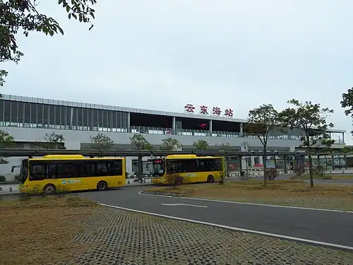 Yundonghai railway station (Chinese: 云东海站) is a railway station in Yundonghai, Sanshui District, Foshan, Guangdong, China. It is an intermediate station on the Guangzhou–Zhaoqing intercity railway. It opened with the line on 30 March 2016.[1][2] The station has two side platforms.
