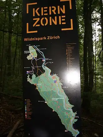 Zürich Wilderness Park (German: Wildnispark Zürich) is a wilderness park near the city of Zürich in Switzerland. It includes the Sihlwald forest, the largest mixed deciduous and coniferous forest in the Swiss Mittelland, and the Langenberg Wildlife Park, the oldest Swiss wildlife park. Both sites are situated in the Sihl Valley to the south of Zürich, but are separated from each other by the town of Langnau am Albis.[1]