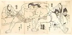 ![]() Zōgahana (right) wrestling Onigasaki | |