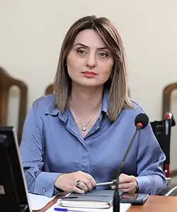 On 30 October 2016, she was elected member of the Board of Civil Society Party. In 2017 she was elected member of the Yerevan Council of Elders for Way Out Alliance.[4] On 11 June 2018 she was appointed Deputy Minister of Labor and Social Affairs[5][6] until 18 January 2019.[7] According to the decree of the President of Armenia Armen Sarkissian, she was appointed Minister of Labor and Social Affairs on 19 January 2019 and took office on 30 January.[8][9] She is a wheelchair user.[10]