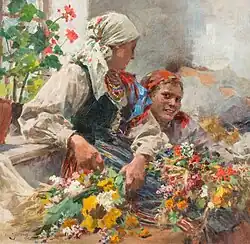 After 1893, he lived in Warsaw. From 1896 to 1897, he painted murals in Saint Petersburg and Moscow. He also did murals at the cathedral in Włocławek and the college in Kalisz.[1] In 1897, he spent some time in Rome, creating ceiling paintings. Four years later, he painted the scene Folk Music on the ceiling of the Warsaw Philharmonic concert hall, which was destroyed by a German bombing in 1939.