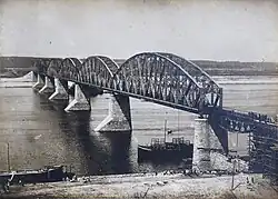 The village of Kabashchich was formed in 1865 on the site now occupied by modern Zelenodolsk. By 1890, 104 people lived in the village and sawmills began to operate nearby it. In 1897, the village was renamed as Paratsk or Paratsky Zaton, by which time it had become a place for repair and wintering of river ships sailing along the Volga. The backwaters of the shipyards would serve as the basis for the future factory named after Maxim Gorky. In 1928, Paratsk was reorganized into the working village of Zeleny Dol. On July 11, 1913, a railway bridge across the Volga was opened near the village, and a stations along this line was established in the village. In 1932, according to the Resolution of the All-Russian Central Executive Committee, Zeleny Dol received the status of a city and the name Zelenodolsk. In the period 1931-1932 three factories were built in the city and the area of housing increased by 24,000 m². Zelenodolsk was part of the Yudinsky region (Tat. Юдино районы) that was formed on August 4, 1938 from the western part of the abolished Kazan region. The administrative center of the district was located in the working village of Yudino (now part of Kazan).[11][6][7][12]