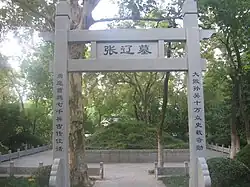 In 207,[29] Zhang Liao followed Cao Cao on a campaign against Yuan Shang, who had allied with the Wuhuan tribes in northern China. When Cao Cao was preparing to attack the enemy in Liucheng (柳城; present-day Xingcheng, Liaoning), Zhang Liao warned him that Jing Province's Governor Liu Biao take advantage of his absence from Xu to send Liu Bei to attack Xu and take control of the capital. However, Cao Cao felt that Liu Biao would not send Liu Bei to attack Xu because he did not trust Liu Bei, so he proceeded with the campaign against Yuan Shang and the Wuhuan.[31] When they encountered the enemy, Zhang Liao displayed great fervour and strongly urged Cao Cao to launch an attack. Cao Cao was so impressed with Zhang Liao that he passed him his personal signal flag. Zhang Liao led the assault on the Wuhuan at White Wolf Mountain (白狼山; near present-day Lingyuan, Liaoning), defeated them and executed the Wuhuan chieftain Tadun.[32]