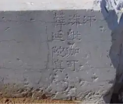 ![]() The stone base inscribed with the name and regnal title of Zhenzhu Khan in Zhaoling (Xiuqin Zhou, 1999) | |||||