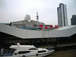 After the People’s Republic of China was founded, the waiting hall of Zhongshan Wharf was expanded, from 370.59 square meters to 775.2 square meters. In 1990, it was rebuilt again, reaching an area of 3,040 square metres (32,700 sq ft).[2]