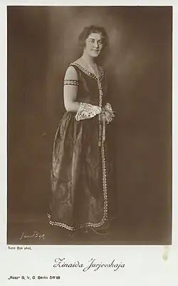 Zinaida Jurjewskaja (10 June 1892 – 3 December 1925; née Lenkin, married name Zinaida von Bremer) was an Estonian-born German operatic soprano singer.[1][2][3] Alternative spellings of her surname found in sources include Jurjevskaja,[4] Jurievskaia[5] Yurievskaja[6] and Yuryevskaja.[7] She adopted this as her stage name as a tribute to her birthplace.[2]