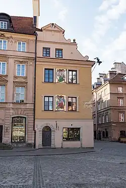 A historic tenement house at Warsaw Old Town Market Place with frescoes painted by Stryjeńska