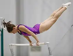 In March Kovács competed at the 2019 Stuttgart World Cup and placed ninth in the all-around.[14] In April she had to withdraw from the 2019 European Championships due to a foot injury.[12] She returned to competition at the Koper World Challenge Cup in June, where she won the gold medals on the uneven bars and balance beam.[15] In September, Kovács competed at the Paris World Challenge Cup, where she took the bronze medal on the uneven bars behind Mélanie de Jesus dos Santos and Anastasia Agafonova.[16] In October she competed at the 2019 World Championships in Stuttgart, where she placed thirtieth in the all-around during qualifications. Although she did not qualify to the all-around final, she earned an individual berth to compete at the 2020 Summer Olympics.[17]