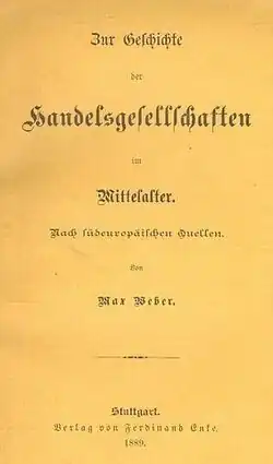 Zur Geschichte der Handelgesellschaften im Mittelalter is a doctoral dissertation written in 1889 by Max Weber, a German economist and sociologist. The original edition was in German and the title is actually translated as The history of commercial partnerships in the Middle Ages.