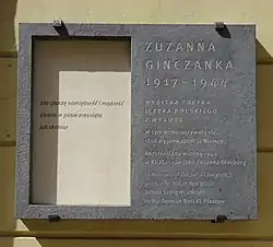 - ^ "Zuzanna Ginczanka uhonorowana tablicą pamiątkową". Retrieved 4 May 2020.