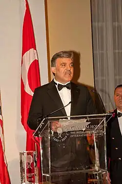 Abdullah Gül (born 29 October 1950) is a Turkish politician who served as the 11th President of Turkey, in office from 2007 to 2014. He previously served for four months as Prime Minister from 2002 to 2003, and concurrently served as both Deputy Prime Minister and as Foreign Minister between 2003 and 2007. He is currently a member of the Advisory Panel for the President of the Islamic Development Bank.