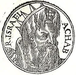 Ahab was a king of the w:Kingdom of Israel (Samaria), the son and successor of King Omri, and the husband of Jezebel of Sidon, according to the Hebrew Bible (1 Kings 16:29–34). He is depicted in the Bible as a Baal worshipper and is criticized for causing moral decline in Israel, though modern scholars argue that Ahab was a Yahwist himself.