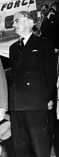 Robert Anthony Eden, 1st Earl of Avon, KG, MC, PC (12 June 1897 – 14 January 1977) was a British Conservative politician who served three periods as Foreign Secretary and then a short term as Prime Minister of the United Kingdom from 1955 to 1957. He served as British Foreign Secretary under Prime Minister Winston Churchill during World War II, having previously resigned the office in opposition of Prime Minister Neville Chamberlain's appeasement of Nazi Germany. His brief premiership ended after he ordered an invasion of Egypt alongside France and Israel during the Suez Crisis, leading to international condemnation of the UK and an acceleration of the decolonization of the British Empire.