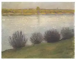 - In the Summer of 1908 he [Macke] returned to Paris, where he was most struck by Cezanne, Seurat and Paul Gauguin. He went to Paris again in 1909, this time in the company of Louis Moilliet. Immediately after this he went to the Tegernsee, a lake in Northern Bavaria. ... he spent a year there, during which, on a visit to Munich, he discovered Marc. ... Macke's encounter with the Blaue Reiter [in Munich], and his rejection of the group's dramatization of the content of art, led him to clarify his idea of what painting meant for him, namely giving an artistic form to impressions of the visible, material world.