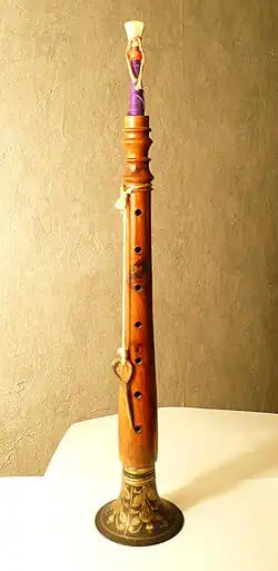Bismillah Khan (Urdu: استاد بسم اللہ خان صاحب; March 21, 1916 – August 21, 2006) was a legendary Indian musician of the wind instrument the Shehnai which he popularized and brought it to a pinnacle of glory and for which he got the honorific Ustad prefixed to his name. The Shehnai, which was a folk instrument played primarily during traditional ceremonies was elevated to the status of playing solo on the concert stage. During his life time he was one of the few artists who received all the four Padma awards, and topped with the India’s highest civilian honour, the Bharat Ratna, in 2001. He was a pious Shi'ite Muslim, but an Indian devotee of Saraswati, the Hindu Goddess of wisdom and arts. He often played at Hindu temples, including the famous Vishwanath Temple in Varanasi on the banks of the river Ganga.
