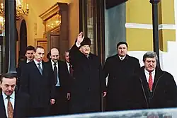 Boris Nikolayevich Yeltsin [Бори́с Никола́евич Е́льцин] (1 February 1931 – 23 April 2007) was a Russian and former Soviet politician who served as the first President of Russia from 1991 to 1999. A member of the Communist Party of the Soviet Union from 1961 to 1990, he later stood as a political independent, during which time he was viewed as being ideologically aligned with liberalism and Russian nationalism.