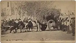 - Fittings done to the bullocks include placing a wooden platform with a sturdy tongue between the parallel wheels of the cart to create space for passengers or freight. The driver holding a yoke hitched to the two bullocks on one hand and a thin whip on the other was invariably an Indian with betel juice running from his lips.