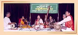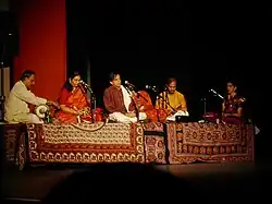 - In the culture of Carnatic music in Madras (Chennai), the term Katcheri is used for a large concert with an ensemble. Briefly, the ensemble consists of various levels of leadership and accompaniment: For example, a solo singer is the principal, a virtuoso in singing technique and improvisation, and a master of the complex musical system. He or she is accompanied by a violin, which follows along, repeating and recapitulating the singer’s improvisations, and a mridangam (drum), which accompanies the metric passages. The violin, which occasionally gets to improvise, is accompanied by a second violin, which also follows, and assumes the main accompanying function when the first violin plays solo. The mridangam, too gets to improvise to solo and is accompanied by a second percussion instrument, a ghatam (actually a pot of fired clay). It is a complicated structure, but the principle is that there is always leadership and accompaniment, various levels of it, and that the leader (or temporary leader) gets to make musical decisions and must be followed by the accompanist. The tamboura, a large four-string lute, which plays drone throughout, performs an essential function but outside the system.