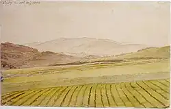 - I just stepped out of the dark, still forest and found myself on a rising hill. In front of me I saw a valley, surrounded by fertile hills, in which a town stood and the newly covered slate roof of the tower glowed in the evening light. Through the richly-flowered, carpeted meadow the river meandered.. .And behind the hills lay the mountains.. ..cliff after cliff rose far out into the horizon.. .Filled with soaring joy I stood there a long time and looked at the beautiful area..
