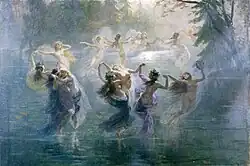 - Ghritachi and Menaka and Rambha and Purvachitti and Swayamprabha and Urvashi and Misrakeshi and Dandagauri and Varuthini and Gopali and Sahajanya and Kumbhayoni and Prajagara and Chitrasena and Chitralekha and Saha and Madhuraswana, these and others by thousands, possessed of eyes like lotus leaves, who were employed in enticing the hearts of persons practising rigid austerities, danced there. And possessing slim waists and fair large hips, they began to perform various evolutions, shaking their deep bosoms, and casting their glances around, and exhibiting other attractive attitudes capable of stealing the hearts and resolutions and minds of the spectators.