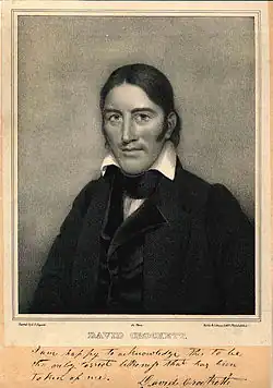 David Crockett (17 August 1786 – 6 March 1836), usually referred to as Davy Crockett, was an American frontiersman, soldier and politician. After serving as a US Congressman for the state of Tennessee, he joined in the Texas Revolution and died in the Battle of the Alamo.