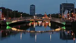 Dublin is the capital and largest city of Ireland. On a bay at the mouth of the River Liffey, it is in the province of Leinster, bordered on the south by the Dublin Mountains, a part of the Wicklow Mountains range. At the 2016 census it had a population of 1,173,179, while the preliminary results of the 2022 census recorded that County Dublin as a whole had a population of 1,450,701, and that the population of the Greater Dublin Area was over 2 million, or roughly 40% of the Republic of Ireland's total population.