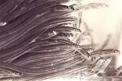 Eels are ray-finned fish belonging to the order Anguilliformes, which consists of eight suborders, 20 families, 164 genera, and about 1000 species. Eels undergo considerable development from the early larval stage to the eventual adult stage and are usually predators.