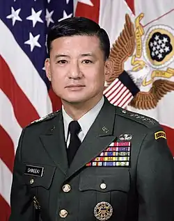 Eric Ken Shinseki (エリック・シンセキ; born 28 November 1942) is a retired United States Army general who served as the seventh United States Secretary of Veterans Affairs (2009-2014). His final U.S. Army post was as the 34th Chief of Staff of the Army (1999–2003). Shinseki is a veteran of two tours of combat in the Vietnam War, in which he was awarded three Bronze Stars for valor and two Purple Hearts. He was both the first Asian-American four-star general (1997) and then the Secretary of Veterans Affairs.