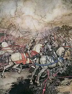 - To Arthur at the conclusion of the Battle of Camlann/Slaughterbridge