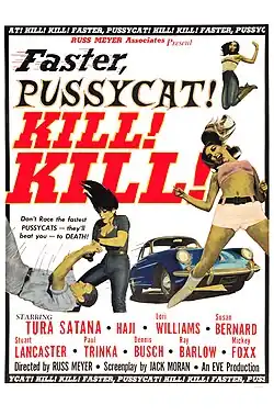 Faster, Pussycat! Kill! Kill! is a 1965 cult film about three go-go dancers who embark on a spree of kidnapping and murder in the California desert.