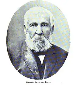 Francisco Perea (January 9, 1830 – May 21, 1913) was a delegate for the Territory of New Mexico to the 38th United States Congress from Mary 4, 1863 to March 3, 1865, a rancher, and Union Army officer in the American Civil War. He was a paternal grandson of Don Francisco Xavier Chávez, the first Governor of the Departmento de Nuevo México, 1st Mexican Empire, and a first cousin of Francisco Perea and of Pedro Perea.