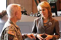 Gabrielle Dee "Gabby" Giffords (born 8 June 1970) is an American retired politician and gun control advocate who served as a member of the United States House of Representatives representing Arizona's 8th congressional district from January 2007 until January 2012, when she resigned due to a severe brain injury suffered during an assassination attempt. A member of the Democratic Party, she was the third woman in Arizona's history to be elected to the U.S. Congress.